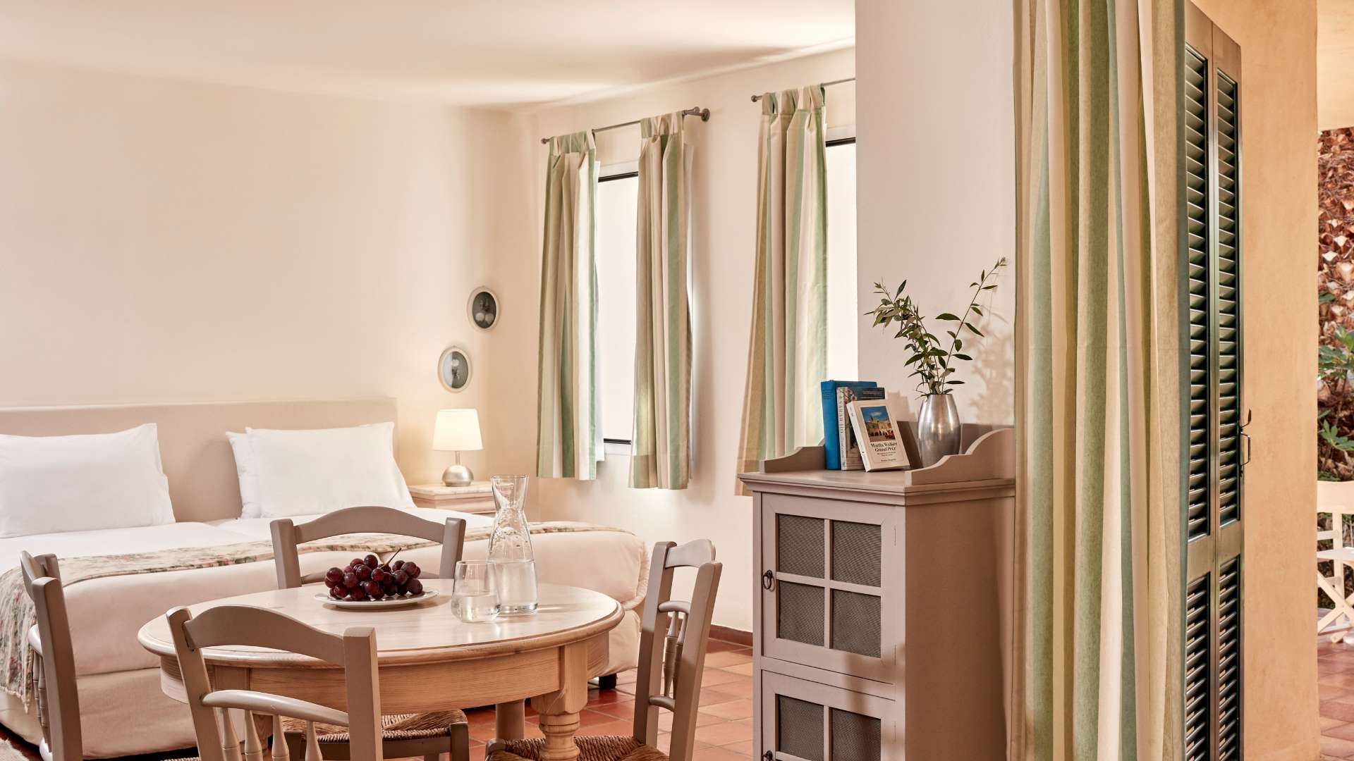Overlooking the vibrant streets of Candia Park Village, the Studio Family Apartment has been beautifully designed with a palette of soft and inviting pastels and earthy tones. Ideal for smaller families or couples, the airy and bright open-plan design consists of a double bed, indoor living area, and a well-equipped kitchenette. The living area can also be adjusted with additional beds for children, offering comfort and flexibility. Bask in the rays of the Cretan sun on the furnished private terrace.