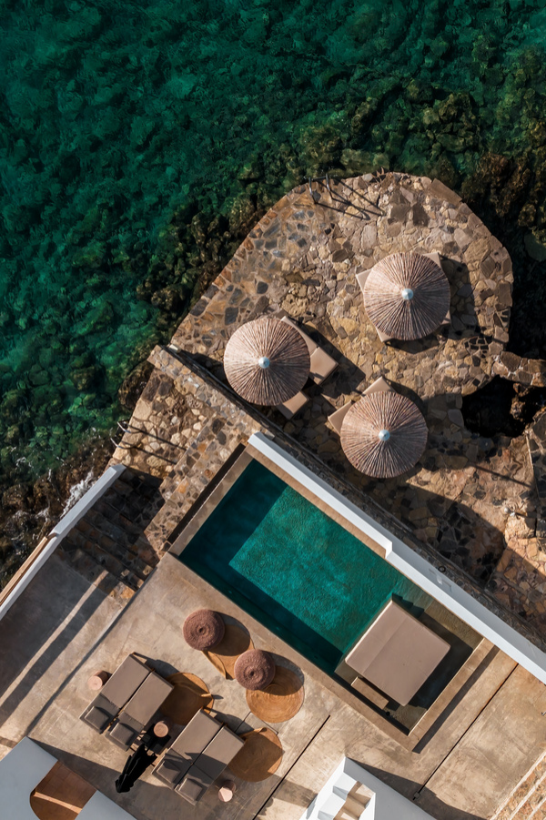Nestled along a 2km coastline, Minos Beach art hotel offers 125 intimate bungalows and villas, encapsulating timeless allure. Seamlessly blending into the natural landscape, their minimalist and earthy interiors provide utmost comfort for a lavish experience.